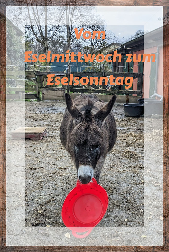Die Tage sind nun einfach kürzer und kein Mensch möchte im halbdunklen Nieselregen unsere lieben Langohren spazieren führen. Die Aussichten des Eselmittwoch-Nachmittags waren daher ab Oktober düster. Und so gibt’s nun den Eselsonntag-Mittag, der fröhlich von halb zwölf bis ungefähr ein Uhr LÄUFT.